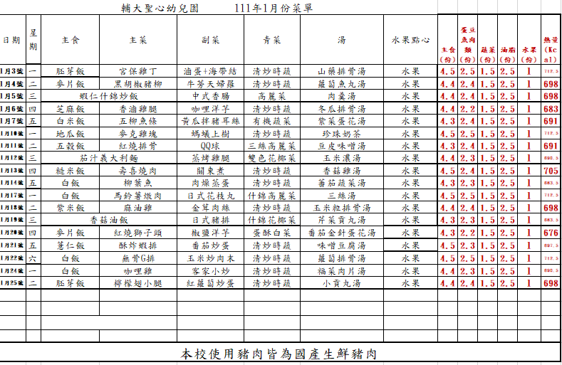 小米飯(280卡) 燒梅花肉(195卡) 宮保雙脆(95卡) 蚵白菜(70卡) 牛蒡湯(90卡) 哈密瓜(60)